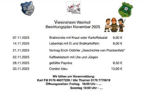 | Dienstag | 28.10. | 19:30 Uhr | Gau-Sportleitertagung in Neumarkt |
